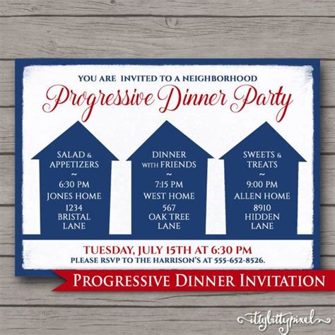 Progressive Dinner Party Invitations - Find tips on choosing hosts, themes,. Learn how to host a progressive dinner party where guests move from one house to another for each course of a meal. Check out our progressive dinner party invitation selection for the very best in unique or custom, handmade pieces from our invitations &. Progressive dinner, party invitation, housewarming party, progressive dinner invite, editable.